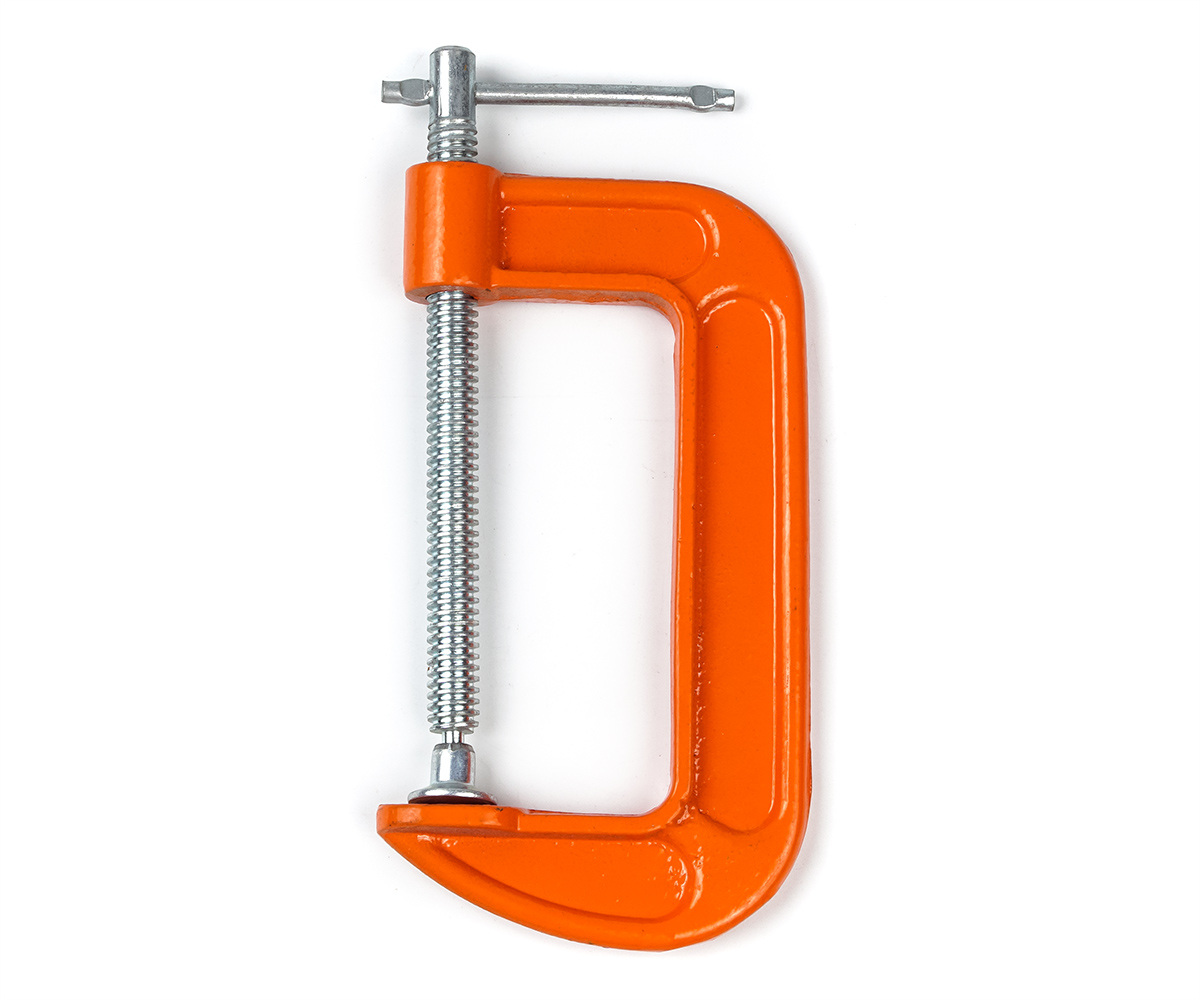 Струбціна типу «G» виготовлена із високоякісної інструментальної сталі, здатна скріплювати деталі зі значним зусиллям на стиск. Завдяки різьбовому регулюванню забезпечується плавна сила стиснення. Простота конструкції та надійність в експлуатації роблять струбцини типу «G» одними з найбільш затребуваних серед інструментів кріплення.