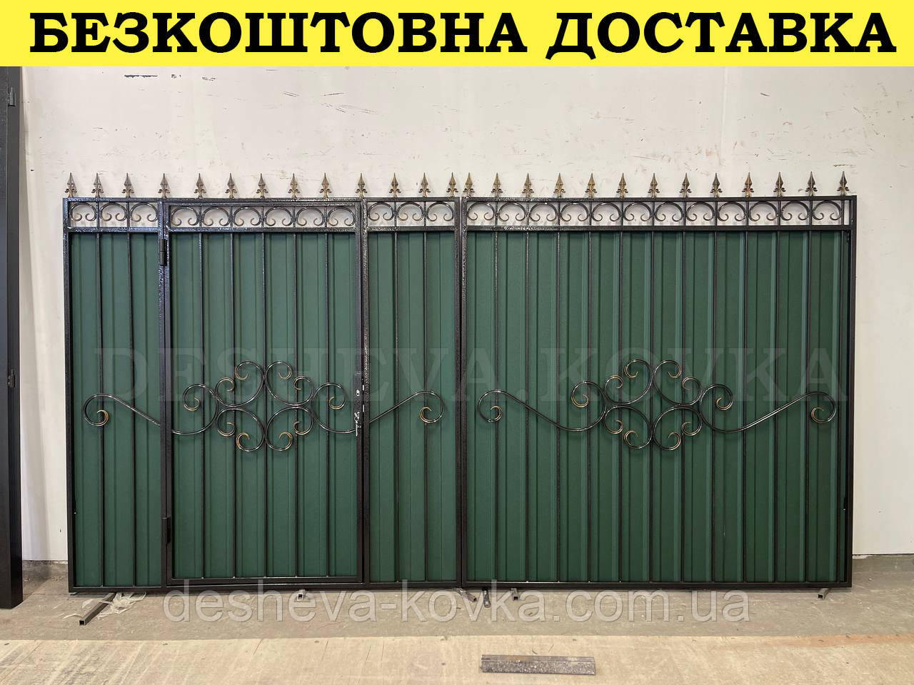 Характеристики товару Ворота із вбудованою хвірткою з профнастилу