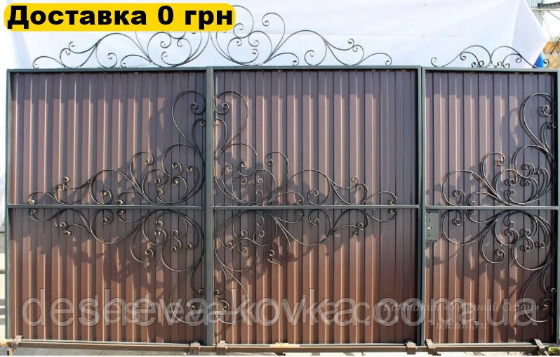 Характеристики товару Ковані ворота з профнастилу з хвірткою