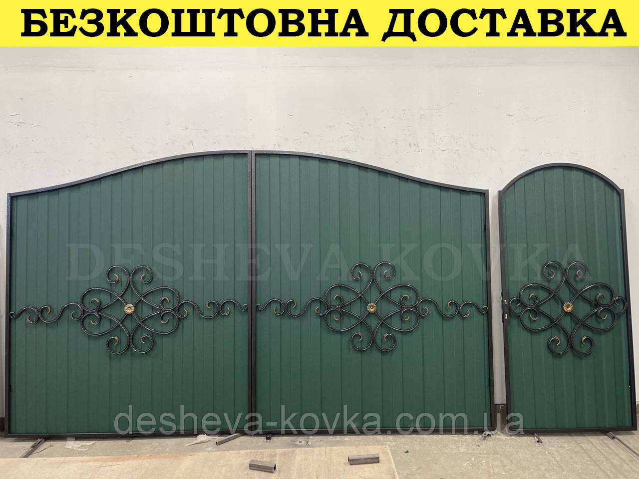 Ковані ворота з елементами кування та профнастилом з хвірткою