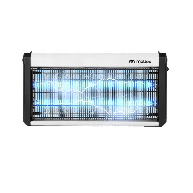 Знищувач Maltec MasterKiller 30W 3800V оснащений двома ультрафіолетовими лампами по 15 Вт (сумарна потужність 30 Вт), які випромінюють світло, що чарівно приваблює комах, таких як мухи, комарі, метелики, мошка, моль і оси. Залучені світлом, вони потрапляють на сітку високовольтну (3800 В), розташовану перед лампами, і миттєво гинуть від потужного електричного розряду.
