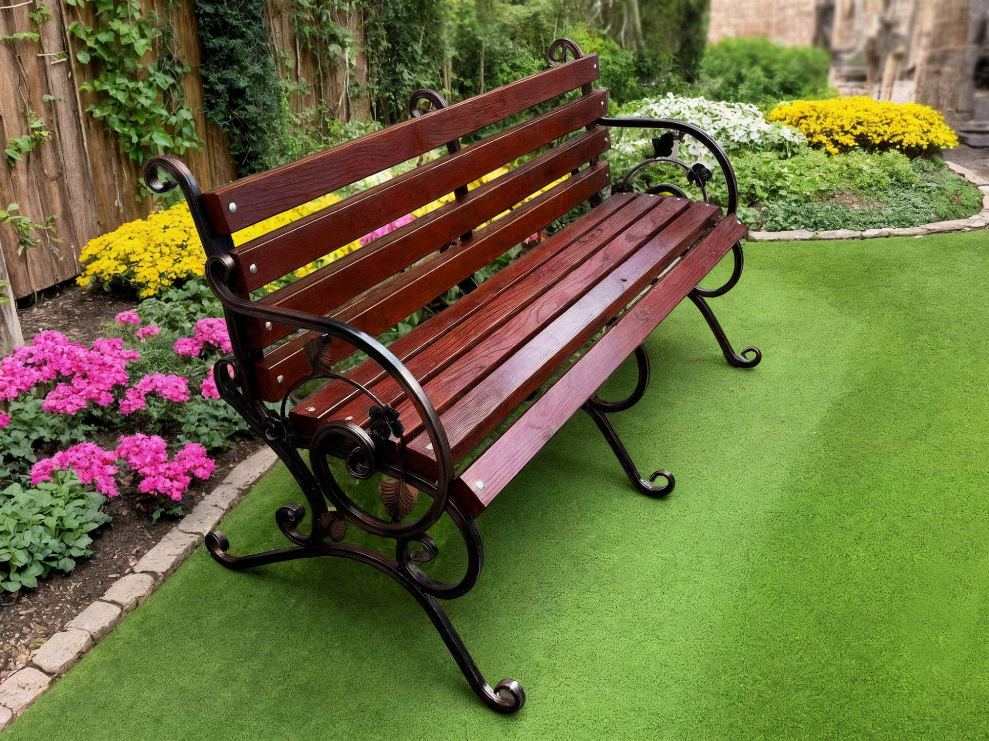 Лавка садова кована Tobi Sho Камелія з підлокітниками 100 см колір махагоній