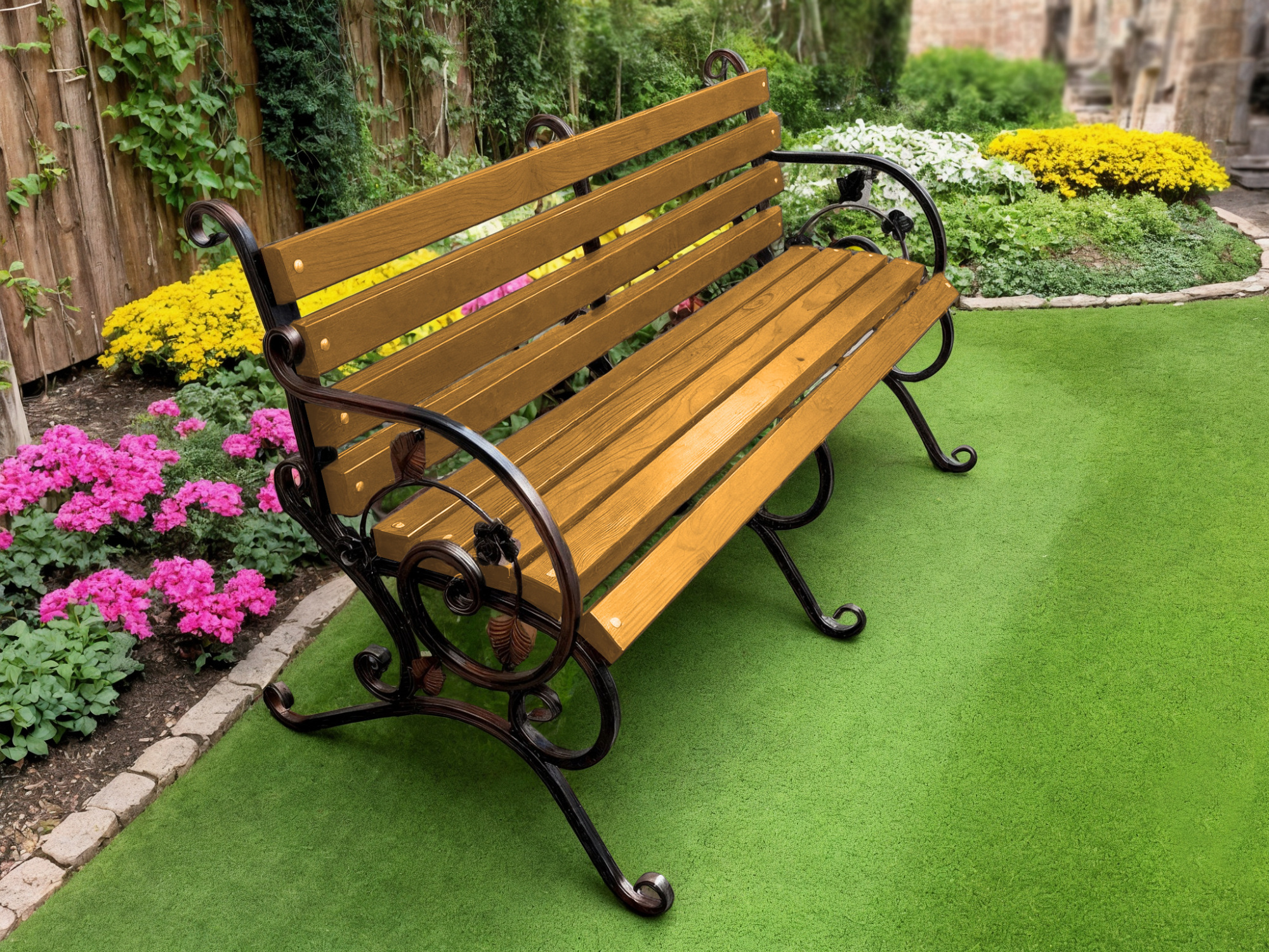 Лавка садова кована Tobi Sho Камелія з підлокітниками 150 см колір дуб