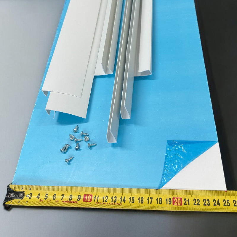 - Сендвіч-панель 10 мм, біла, ширина 250 мм, довжина в залежності типу вікна (див. "Типи готових комплектів на вікна та двері").