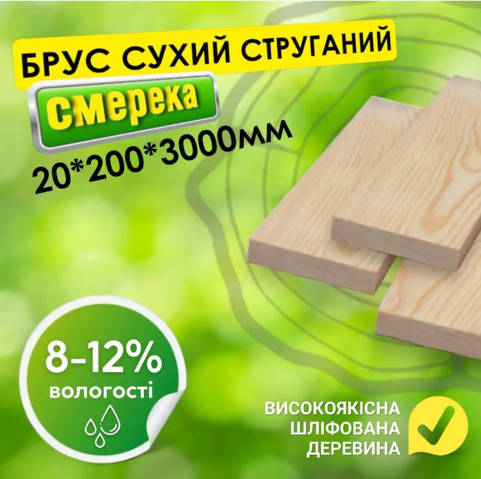 Опис Брус 20*200*3000 мм 2 сорт деревянный сухой строганный
