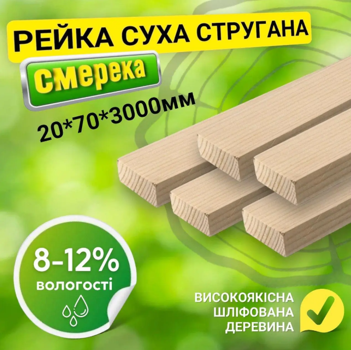 Опис Рейка 20*70*3000 мм 2 сорт сухая строганная деревянная