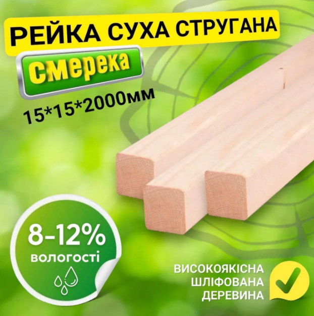 Опис Рейка 15*15*2000 мм 2 сорт сухая строганная деревянная