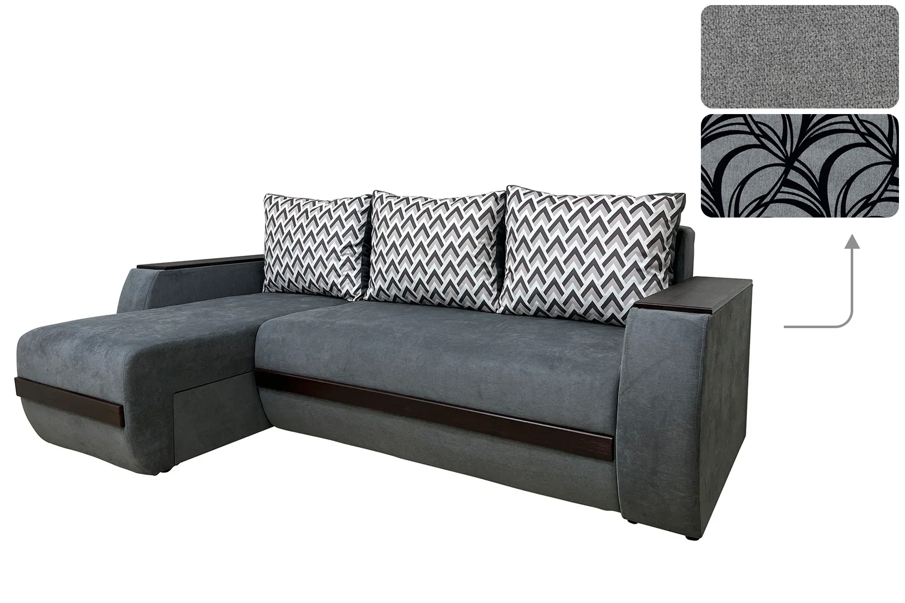 Опис Кутовий диван Фуджи 2 (242 × 168 см, аляска 93 + маура грей) IMI