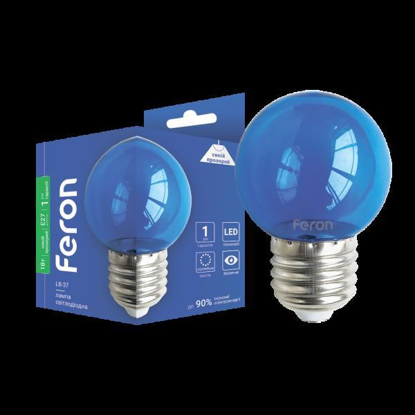 Опис Світлодіодна декоративна лампа Feron LB-37 1Вт E27 синя прозрачная