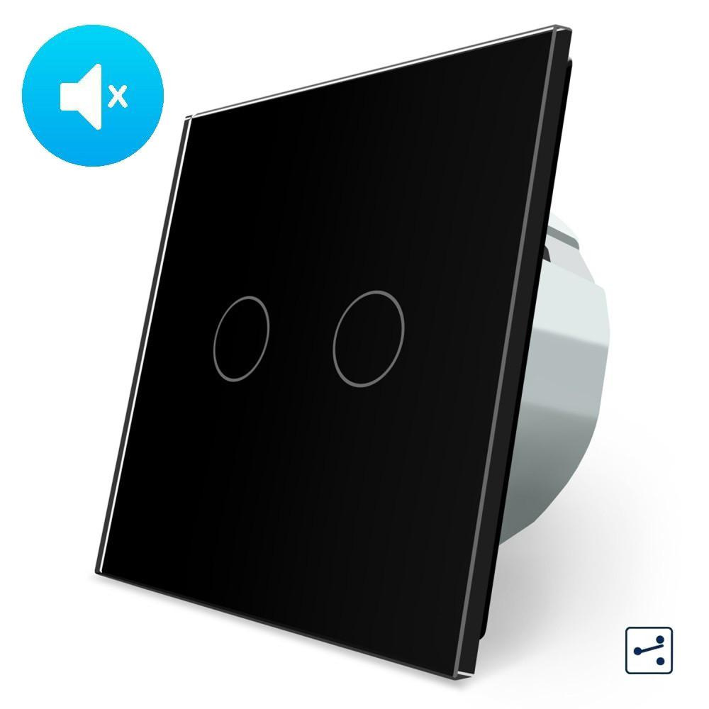 Бесшумный сенсорный проходной выключатель 2 сенсора Livolo черный стекло (VL-C702SQ-12)