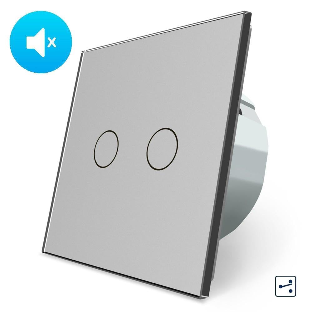 Бесшумный сенсорный проходной выключатель 2 сенсора Livolo серый стекло (VL-C702SQ-15)