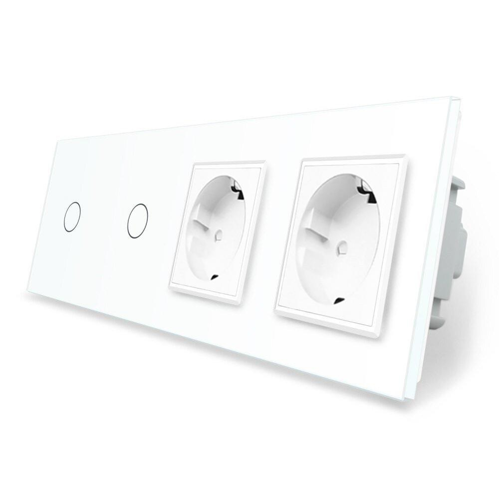 Сенсорный выключатель 2 сенсора 2 розетки Livolo белый стекло (VL-C701/C701/C7C2EU-11)
