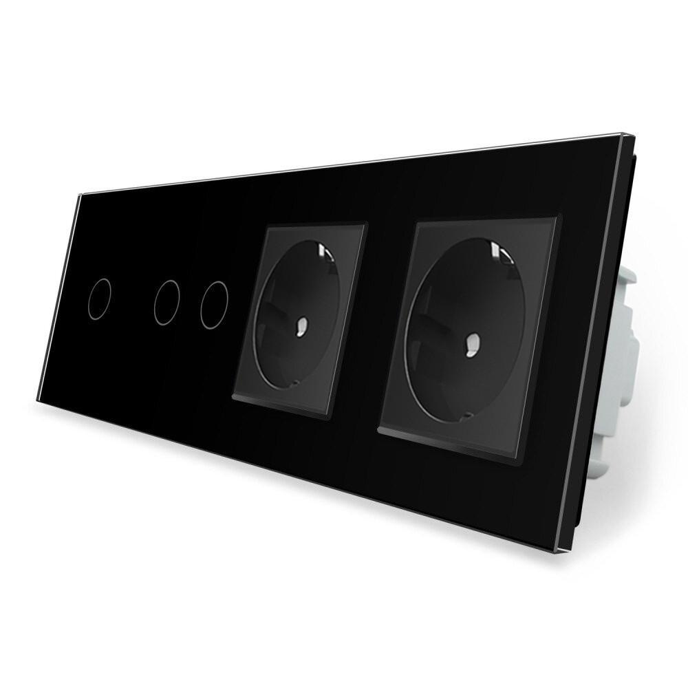 Сенсорный выключатель 3 сенсора 2 розетки Livolo черный стекло (VL-C701/C702/C7C2EU-12)