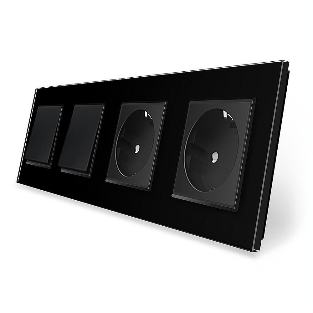 Двухклавишный выключатель (1-1) с двойной розеткой Livolo черное стекло (VL-C7K1/K1/FCTC16A/FCTC16A-8BP)