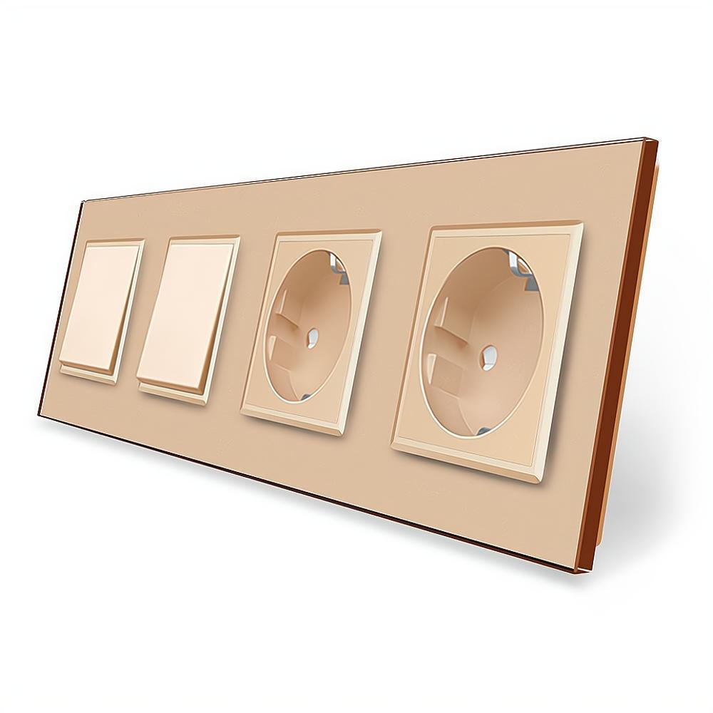 Двухклавишный выключатель (1-1) с двойной розеткой Livolo золотое стекло (VL-C7K1/K1/FCTC16A/FCTC16A-8AP)