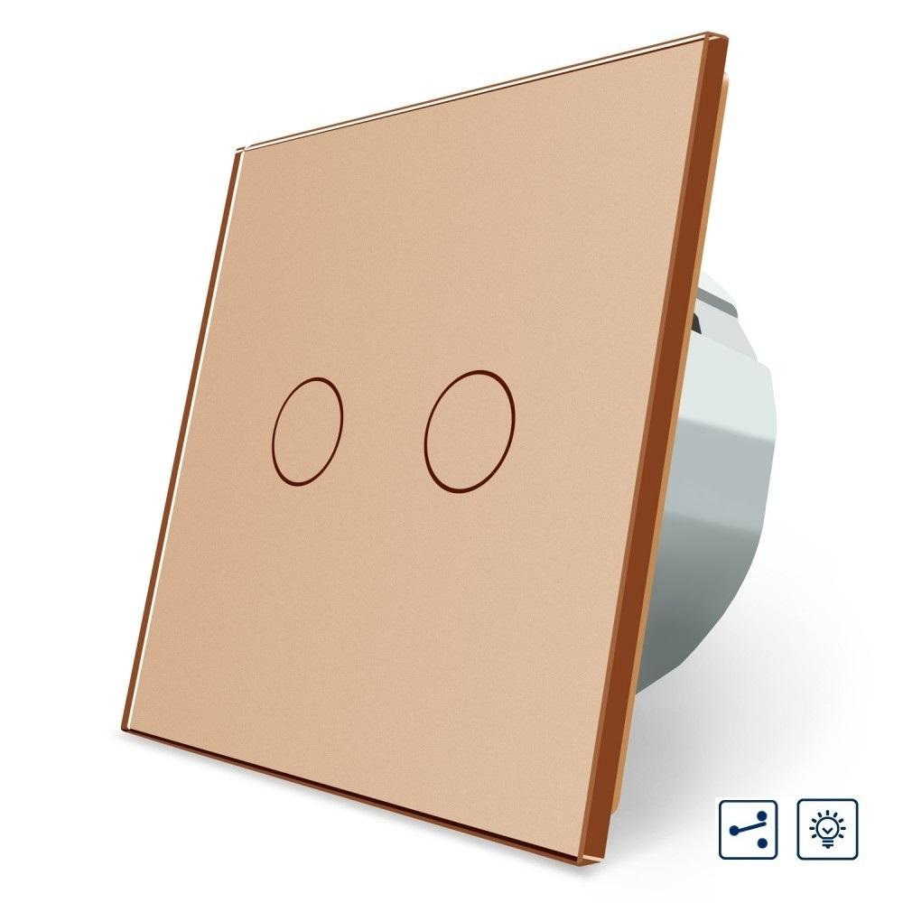Сенсорний прохідний/перехресний димер 2 сенсори Livolo золотий скло (VL-C7FC2SD2-2GAP)