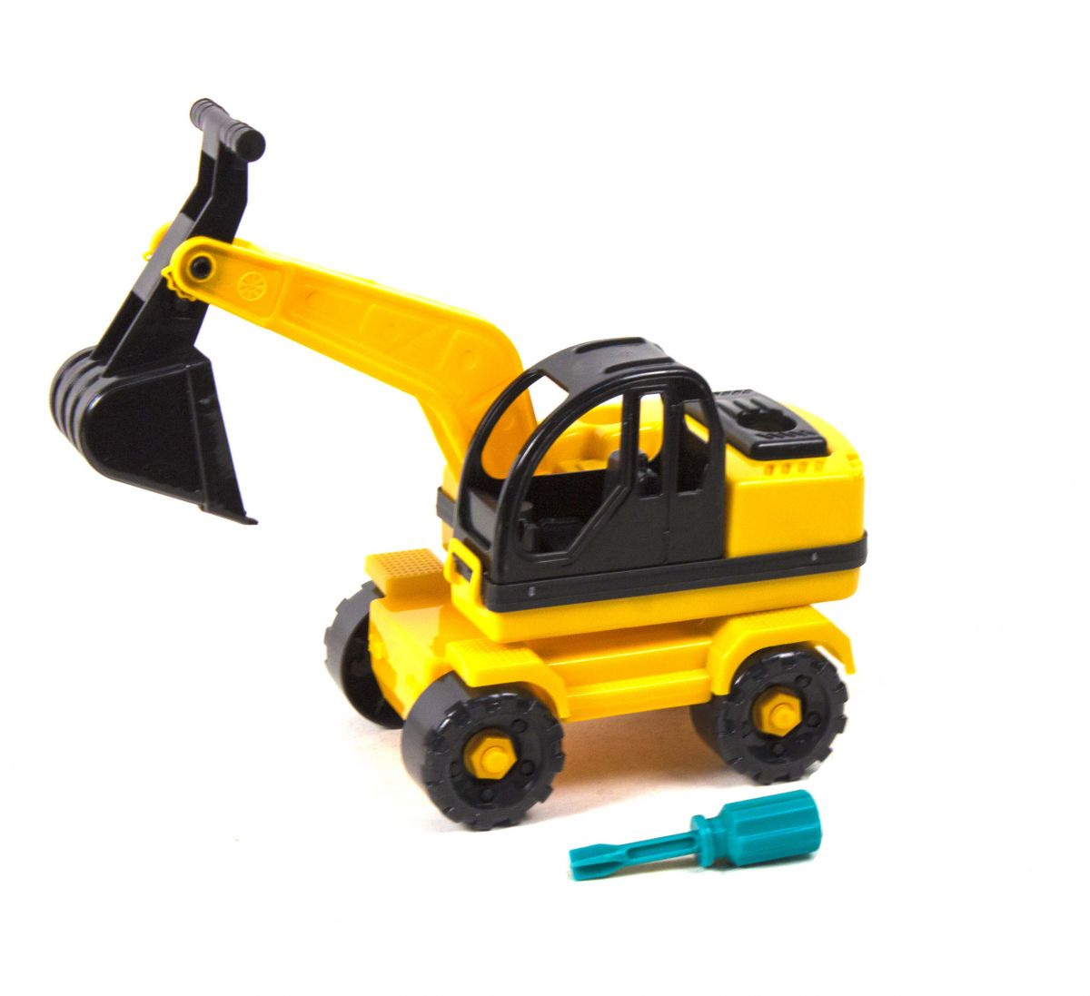 Конструктор з викруткою "Екскаватор". Конструктор дозволить дитині відчути себе справжнім механіком та за допомогою викрутки, зібрати та розібрати екскаватор. Складається з 20 деталей + викрутка.