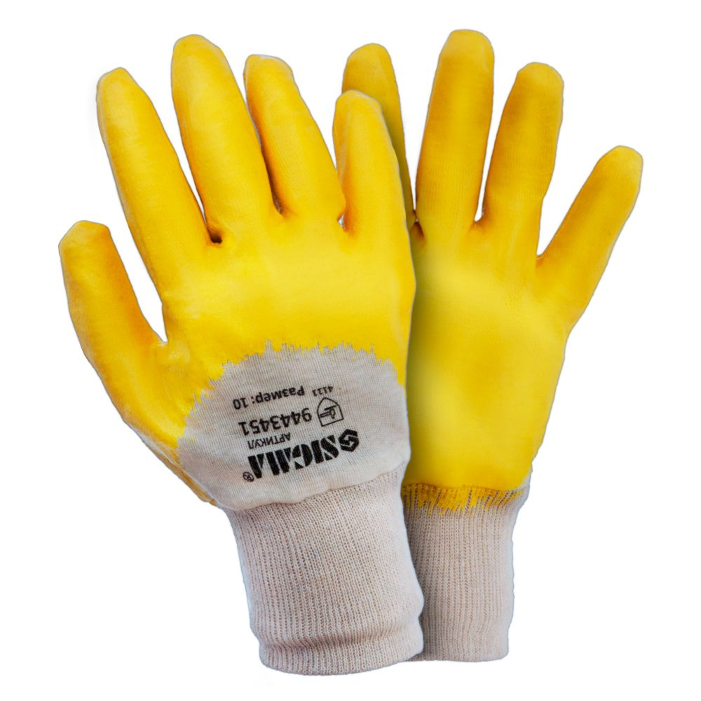 Рукавички трикотажні з нітриловим покриттям (жовті) 120 пар Sigma (9443451) призначені для захисту рук від олії, жирів, нафтопродуктів, а також механічних впливів.
