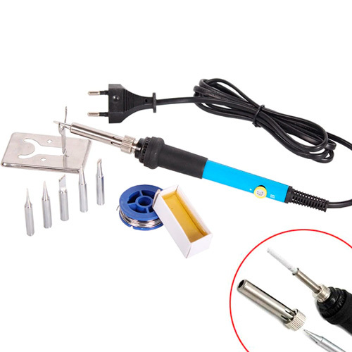 У комплекті з паяльником поставляється 6 тис різних форм під конкретне завдання, а також металева підставка і каніфоль.