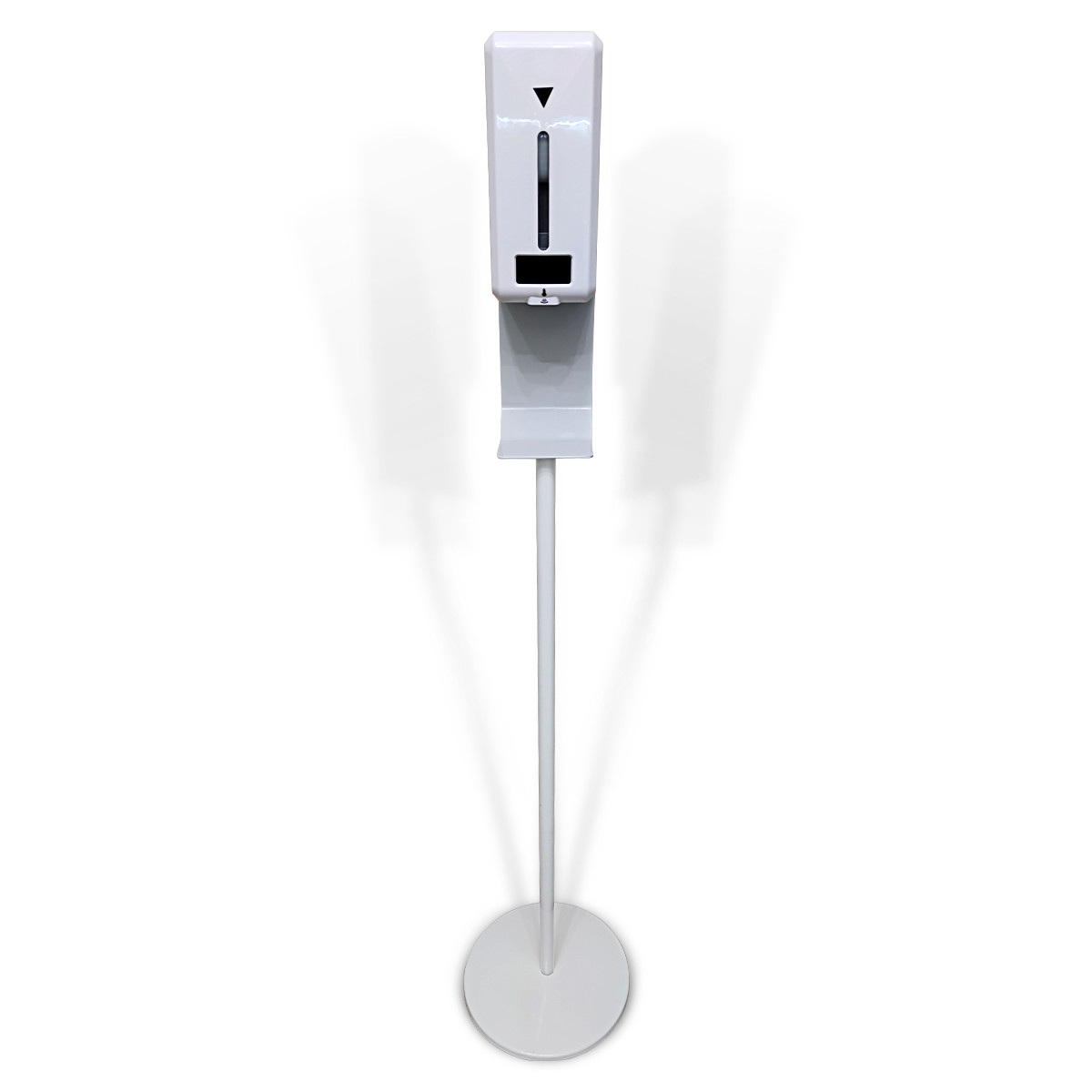 У комплект входить: Дозатор, ключ, інструкція, кріпильні елементи, блок живлення від мережі або батарейки на вибір покупця, стійка металева підлога.