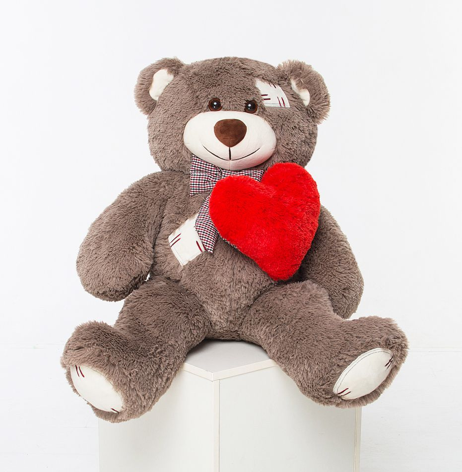 Опис Плюшевий ведмідь із серцем Mister Medved Латки 150 см Капучино (076)