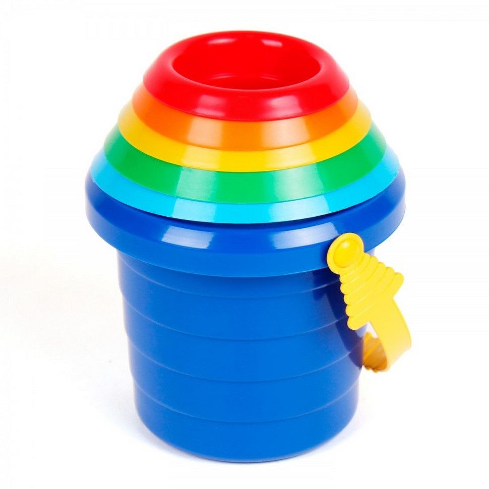 Пирамидка из 6 ярких формочек. Малыш складывает пирамидку или вкладывает элементы друг в друга. С помощью этих формочек можно делать различные фигурки в песке.