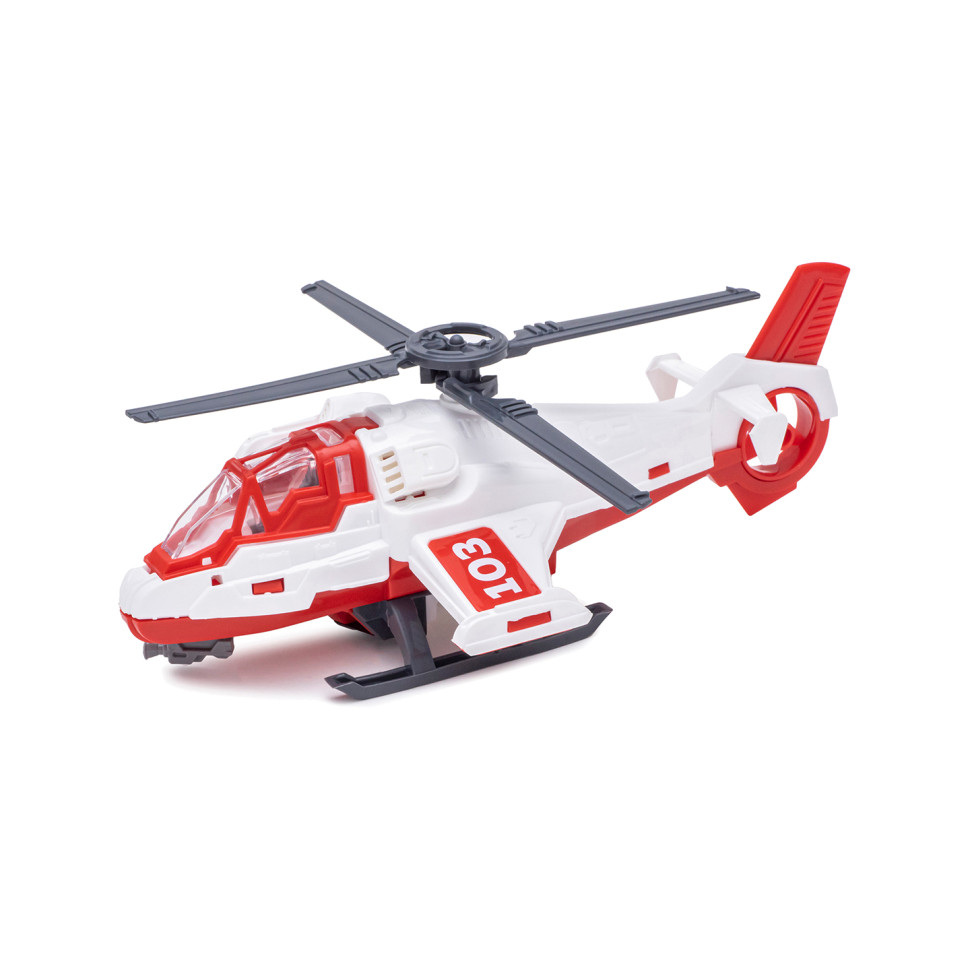 Найпершими на місце події завжди прибувають працівники цієї служби! А як найшвидше дістатись туди? Звичайно ж на гелікоптері! Яскравий деталізований вертоліт з символікою служби має 2 гвинти, що обертаються, та кабіну, до якої можна посадити іграшкову фігурку