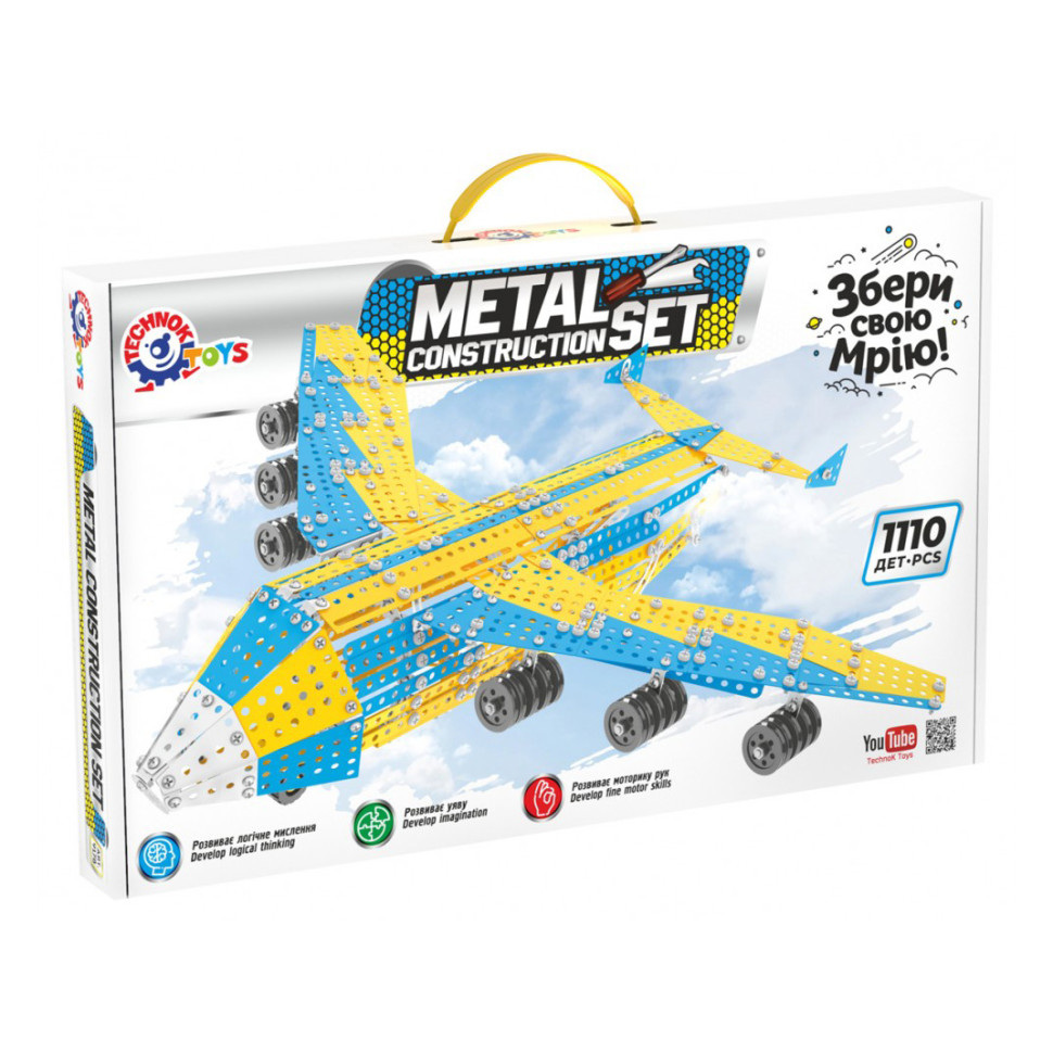 "Мрія" - це не просто літак! Не тільки найбільший та найпотужніший літак у світі, створений Київським КБ ім. Антонова. Це наш символ незламності та єднання! Це наша впевненість у Перемозі! Це неухильна віра у вільну, велику та квітучу Україну! Подарункова версія Металевого конструктора ТехноК, модель "Літак Мрія". Великий та цікавий конструктор аж на 1110 деталей. Це роботи не на один день. Але вона того варта - наша Мрія! Конструктор - це можливість корисно проводити час з батьками та друзями. Такі ігри добре розвивають моторику, увагу та мислення. Іграшка є першим кроком у вивченні фізики та механіки, знайомить з технічними назвами деталей, простими кресленнями та схемами. Детально: 1110 деталей розмах крил 64 см довжина 53 см висота 15 см. рухомі шасі відкидний трап у багажному відділенні Металеві конструктори ТехноК вирізняють високою якістю та різноманіттям деталей, цікавим поєднанням металевих та пластикових запчастин. У кожному наборі є викрутка та ключі для збирання моделей. На допомогу юним механікам – кольорова, детальна покрокова інструкція, яку також можна завантажити з нашого корпоративного сайту. Для дітей від 7-ми років. Пакування - велика подарункова коробка з ручкою.