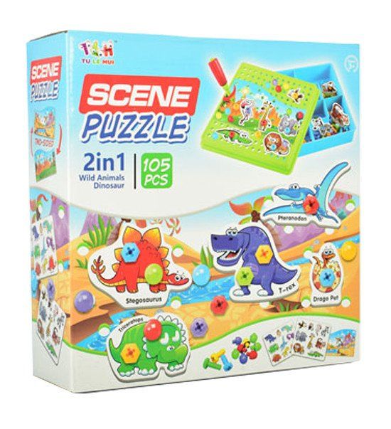 Найцікавіша дитяча мозаїка TLH-08 Динозаври - гра 2-в-1, яка являє собою оновлену, поліпшену класичну версію популярної гри. Мозаїка на шурупах містить 105 окремих детальок, викрутку, доповнені барвистою коробкою розміром 25,5 х 25,5 х 8 см. Складаючи з різнокольорових елементів барвисті картинки, комбінуючи детальки між собою за формою і кольором, Ваш непосида буде розвивати асоціативне мислення, колірне і естетичне сприйняття. Для виготовлення ігрового набору були використані виключно гіпоалергенні, зносостійкі матеріали, які не містять токсичних компонентів в своєму складі. Щоб створити барвисте панно за допомогою мозаїки, малюкові необхідно не просто вставляти детальки в отвори, але і надійно фіксувати їх, застосовуючи викрутку. Захоплюючий і одночасно кропіткий процес, що вимагає уважності й посидючості, позитивно вплине на психоемоційний стан Вашого малюка.