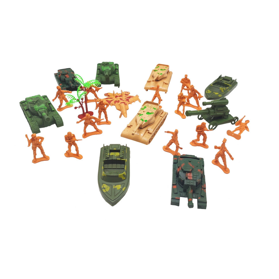 Дитячий ігровий набір фігурок Комбат стане чудовим подарунком для будь-якого хлопчиська! У набір входить все, що необхідно для створення сюжетно-рольової гри про війну: пластикові фігурки військового транспорту, солдатики, дерева. Фігурки солдатів і техніки виготовлені з пластику. Кожен персонаж зображений у різних бойових позах. Вся військова техніка є маленькі копії грізних прототипів. З таким асортиментом фігурок фантазія дитини буде працювати на повну, адже тепер малюк на чолі всієї операції, він вирішує, яку позицію зайняти його солдатам і як організувати план захоплення ворога.