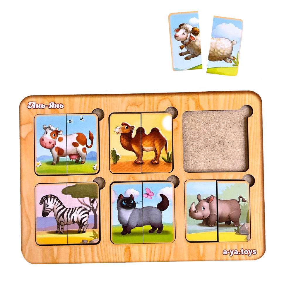 Дерев'яний пазл-сортер "Дивовижні звірятка" Ubumblebees ПСФ090 PSF090 6 картинок тварин