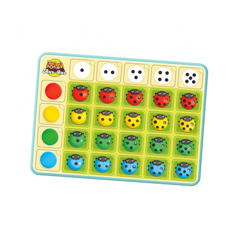 Дерев'яний планшет-основа на якому розміщені: 4 плашки з квітами 5 з точками для рахунку від 1 до 5, а також 20 плашок з сонечками для сортування. Дитині необхідно розташувати плашку з сонечком в потрібній графі, у зазначеному кольорі і з потрібною кількістю точок на крильцях. Гра для розвитку навичок орієнтування в просторі (вгору, вниз, вправо, вліво). Наприклад, ось так зелена божа корівка повзе вгору, а ось так червона божа корівка летить вправо. Гра розвиває увагу, логіку, мислення і пам'ять. 1. Розвиток логічного і понятійного мислення 2. За допомогою такого методичного матеріалу, діти пізнають навколишній світ. 3. Розвивається дрібна моторика. Вставляючи певним чином детальки, чудово тренуються пальчики. 4. Працює зорова пам'ять, тренується увагу і посидючість.