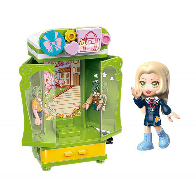 Конструктор Bambi 34012 "UNA" Гардероб фігурка, аксесуари. Гра з конструктором допомагає розвивати моторику пальчиків, уважність, посидючість, мислення та фантазію. Виріб виготовлений з екологічного пластику, відповідає санітарно-технічним нормам та стандартам якості. Рекомендований вік від 6 років і більше. Розмір упакування: 13х11х6 см.