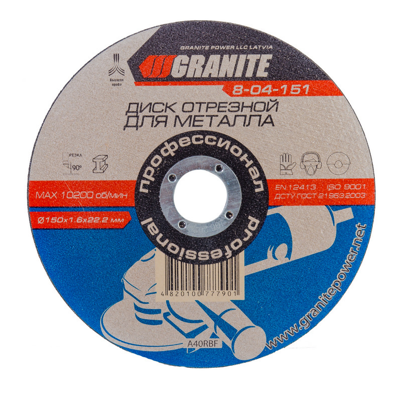 Диск абразивний відрізний для металу 150*1,6*22,2 мм GRANITE GM (8-04-151)