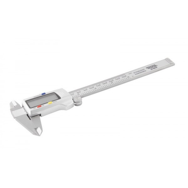Штангенциркуль цифровий 150 мм точність 0,02 мм у футлярі MASTERTOOL GM (30-0628) - це інструмент для вимірювання розмірів об'єктів, який може використовуватись у різних галузях, таких як металообробка, виробництво, ремонт тощо. Він виготовляється під торговою маркою MASTERTOOL.