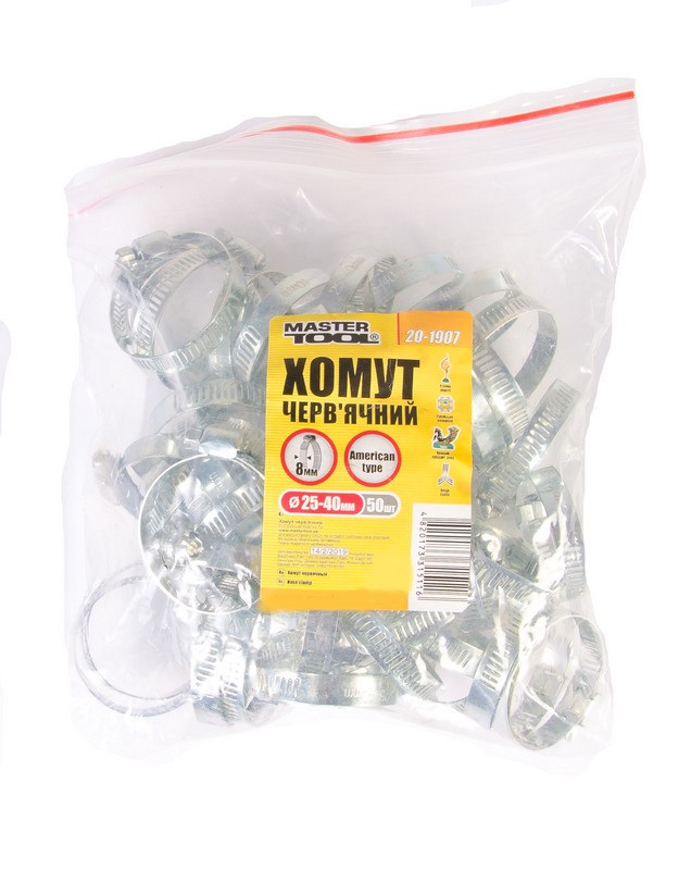 Опис Хомути American type 8 мм 25-40 мм 50 шт MASTERTOOL GM (20-1907)