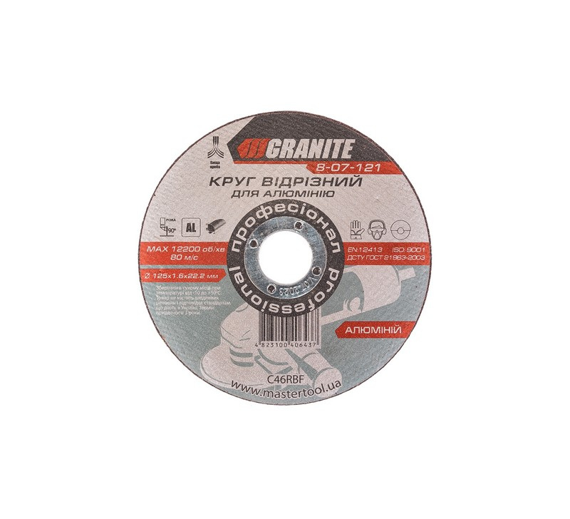 Диск абразивний відрізний GRANITE GM 8-07-121 також призначений для різання алюмінієвих деталей та конструкцій. Він має діаметр 125 мм, товщину 1,6 мм та отвір під посадку на шпиндель діаметром 22,2 мм. GRANITE GM 8-07-121 також використовується з кутовими шліфувальними машинами та забезпечує швидке та точне різання алюмінію.