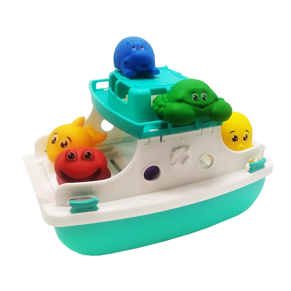 Матусі прекрасно знають, як перетворити купання дітей у веселу і захоплюючу гру. В цьому батькам допоможуть іграшки для ванної. Наповніть теплу ванну цікавими тваринками і Ваш малюк буде приймати водні процедури з захопленням. Іграшка "Пором ТехноК" з фігурками на борту неодмінно сподобається малюкам. Пором - це неймовірне поєднання краси і функціональності. Його конструкція дозволяє добре плавати і перевозити улюблені іграшки. Пором обладнаний двома трапами, які ховаються в корпусі і не заважають руху. У верхній частині розміщена рубка капітана, палуба для пасажирів і майданчик для вертольота. Спеціальні отвори в корпусі допоможуть легко злити воду з порома і висушити його. Так іграшка буде залишатися чистою та безпечною для дітей. Звірятка, зручно розмістилися на палубі - різноманітні представники водного світу: акула, восьминіг, морська зірка, бегемотик, жаба і краб. Надруковані очі методом тамподруку додають іграшок радісних емоцій і краси, з ними звірі ніби оживають. Звірятка відмінно тримаються на воді, що дозволяє дітям придумувати різноманітні ігри. А ще фігурки можна використовувати для навчання: вивчати кольори, назви тварин, робити перші кроки в рахунку. Такі ігри розвивають у дітей дрібну моторику, мовлення, уяву і фантазію. Іграшка "Пором ТехноК" виготовлена з міцного нетоксичного пластику. Використання тільки високоякісних барвників забезпечує яскравий колір протягом тривалого терміну використання. М'які звірятка виготовлені із спеціального гіпоалергенного матеріалу - пластизолю. Матеріал, використовуваний в наших іграшках пройшов складну перевірку на відсутність шкідливих речовин і отримав відповідні гігієнічні висновки акредитованих лабораторій. Іграшки з пластизолю м'які, міцні і приємні на дотик, без різкого запаху. З іграшкою "Пором ТехноК" кожне купання Вашого малюка буде наповнена радістю і захоплюючими пригодами. З ним весело грати у ванній, на річці і на пляжі, і навіть вдома. Зверніть увагу! Після використання необхідно промити іграшки під проточною водою і висушити. Не використовувати, не сушити і не зберігати поблизу нагрівальних приладів. Комплектація: пором, фігури різного кольору і форми 6 шт. Упаковка - сітка з кольорової картонної етикеткою. Для дітей від 3-х років.