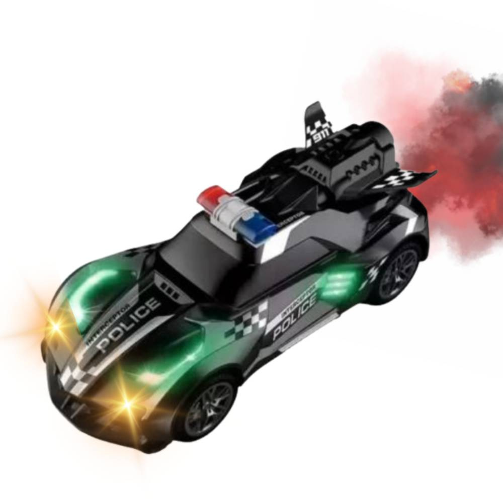 • Паровий ефект: Поліцейська машинка має спеціальні отвори, з яких під час руху виходить пара, створюючи реалістичність та ефектність у гоночних змаганнях. Цей особливий ефект допомагає створити атмосферу справжніх гонок у вас вдома.