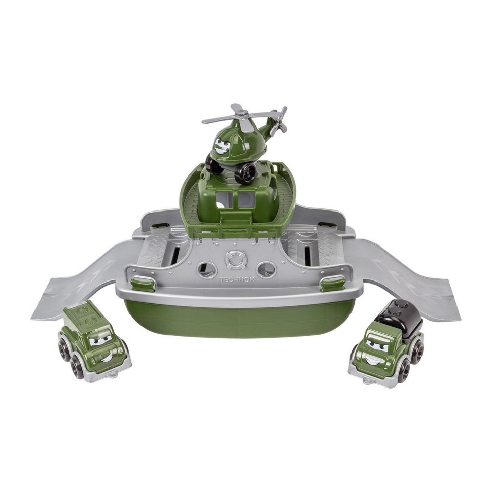 Іграшковий пором у стилі Мілітарі - це захоплива іграшка для дітей із цікавим і сучасним дизайном. Великий, міцний водний транспорт для перевезення десантників, військової техніки та боєприпасів. Конструкція іграшкового порома дає змогу йому транспортувати через водні перешкоди улюблені іграшки. З ним весело грати у ванній, на річці та на пляжі. "Пором" обладнаний двома трапами, для заїзду та з'їзду автомобілів. Під час руху по воді трапи ховаються в корпусі і не заважають руху. До складу іграшки входить 2 машинки (десантне авто, бензовоз) і вертоліт. З емоціями машинки, немов "оживають" і перетворюються на відважних воїнів. Завдяки цьому, діти зможуть створити цікаві ігрові сюжети, які стосуються транспорту військового призначення. Для більшої реалістичності, іграшковий пором має колірну гаму, яка повністю відповідає стилістиці військових транспортних засобів. На палубі порома є спеціальні місця для фіксації транспорту під час руху по воді, а у верхній частині - майданчик для вертольота. "Пором із набором транспорту" неодмінно сподобається вашим малюкам і зробить водні процедури захопливими та цікавими. Спеціальні отвори в корпусі дають змогу легко злити воду з порома та висушити його. Так іграшка залишатиметься чистою та безпечною для малюків. Іграшка "Пором із набором транспорту ТехноК" виготовлена з міцного нетоксичного пластику. Застосування тільки високоякісних барвників забезпечує яскравий колір протягом тривалого терміну використання.