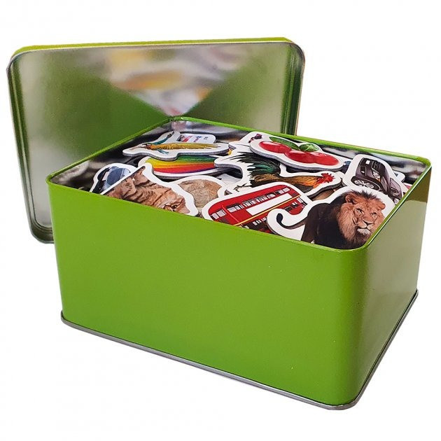 110 яскравих великих і зручних магнітів в одній подарунковій упаковці! У металевій коробці зібрані реальні зображення тварин ферми і зоопарку, транспорт, овочі, фрукти і ягоди. Грати з ними можна нескінченно! Вивчай назви. Порівнюй і описовий. Класифікуються і групуються. Придумуй історії. Вважай і вивчай мови. Магніти добре кріпляться до будь-якої металевої поверхні, вони міцні і зручні. Ігри з магнітами розвивають увагу, пам'ять, мислення, фантазію і моторику. Веселих ігор!
