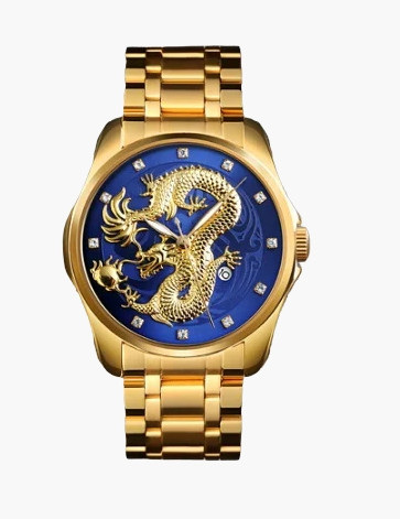 Опис Чоловічий наручний годинник Skmei 9193 Дракон Золотистий