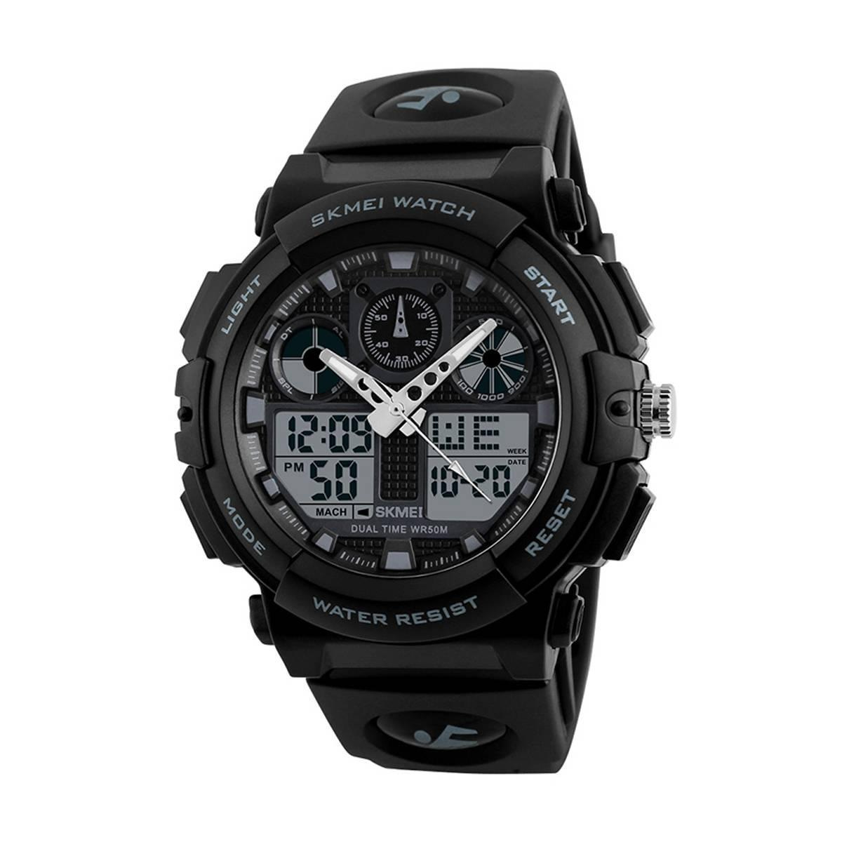 Практична і стильна модель годинника Skmei 1270 З часом японський виробник з’єднується з надійним кварцовим механізмом. Прочний пластиковий корпус з 4-ма кнопками для управління, поліуретановий ремінець з надійною застібкою і відмінно зчислений циферблат. Ви завжди будете проінформовані не тільки точним часом, але й датою, оскільки ця модель обладнана календарями.