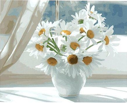 Опис Картина за номерами BrushMe "Ромашки в білій вазі на вікні" 40х50см BS22637