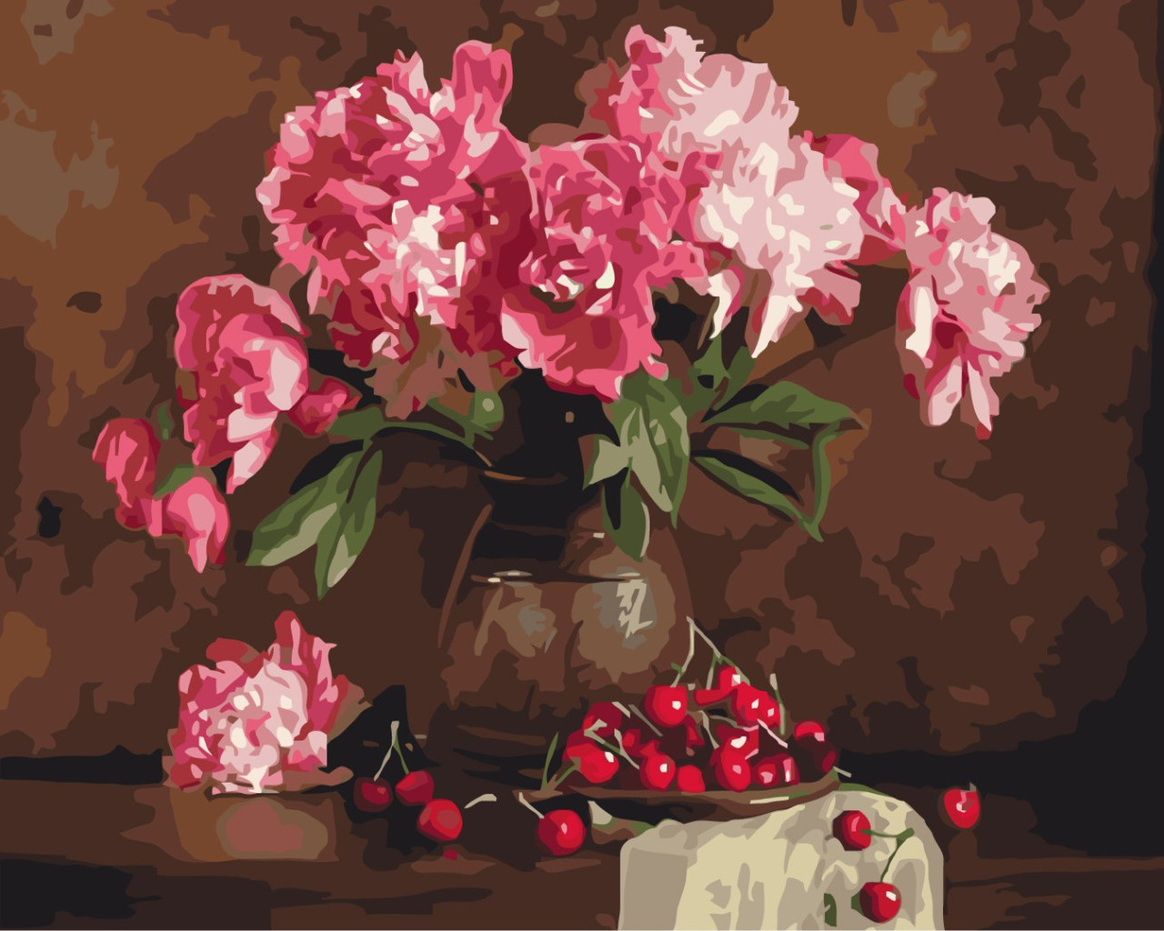 Опис Картина за номерами BrushMe "Півонії і вишні" 40х50 см BS4645