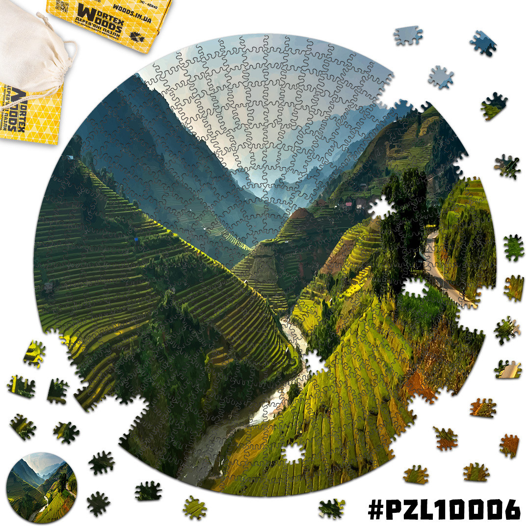 Дерев'яні пазли Wortex Woods Рисові тераси Му Кан Чай 30х30 см 188 елементи амеби PZL10006