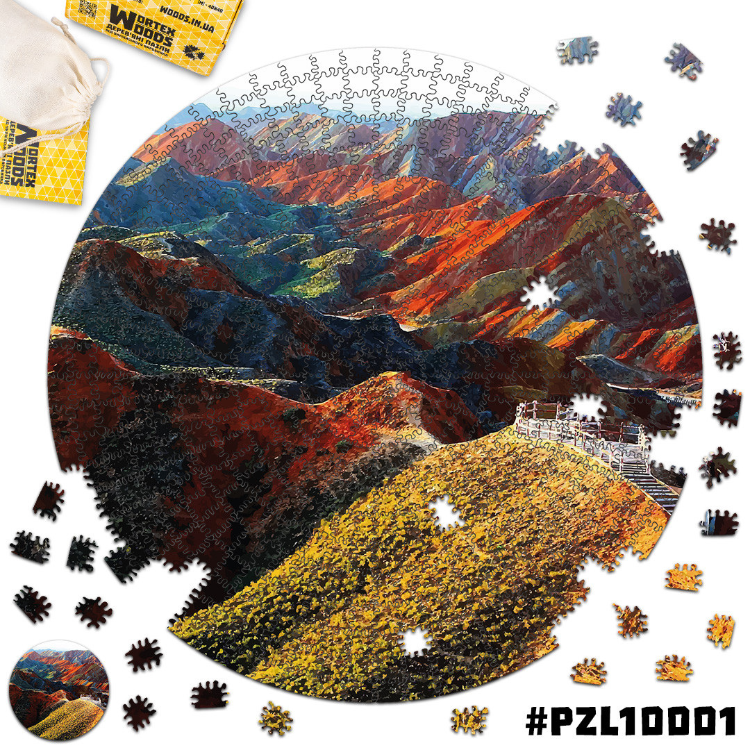 Опис Дерев'яні пазли Wortex Woods Кольорові скелі Чжан'є Данксіа 50х50 см 508 елементи амеби PZL10001L