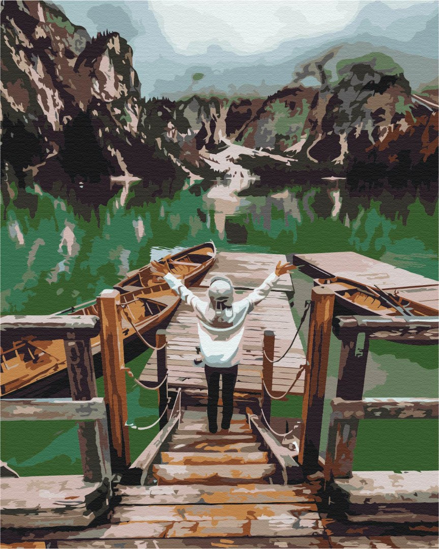 Картина за номерами BrushMe "Мандрівниця на озері Брайєс" 40х50см BS52566