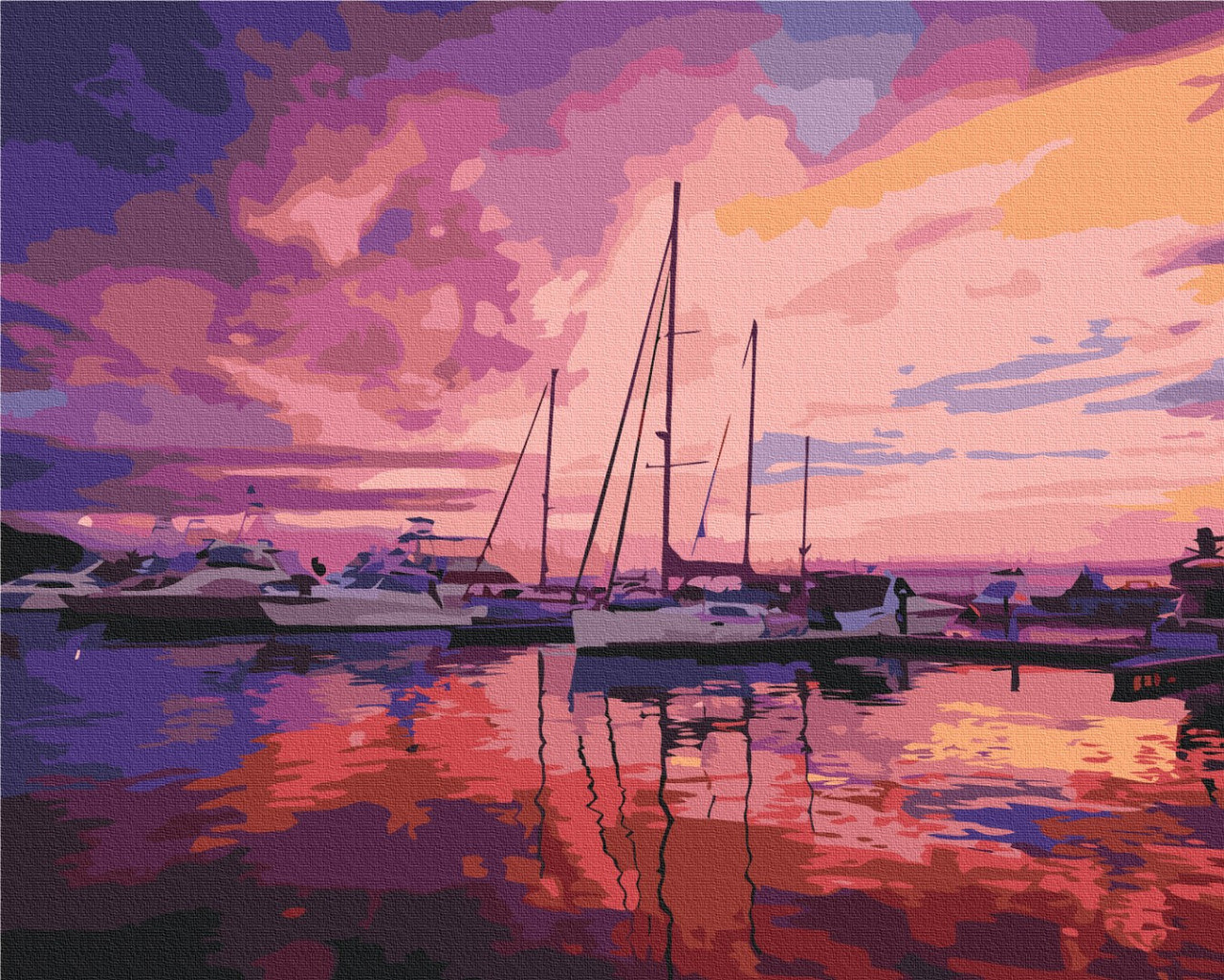 Опис Картина за номерами BrushMe "Рожевий світанок у яхтклубі" 40х50см BS52644