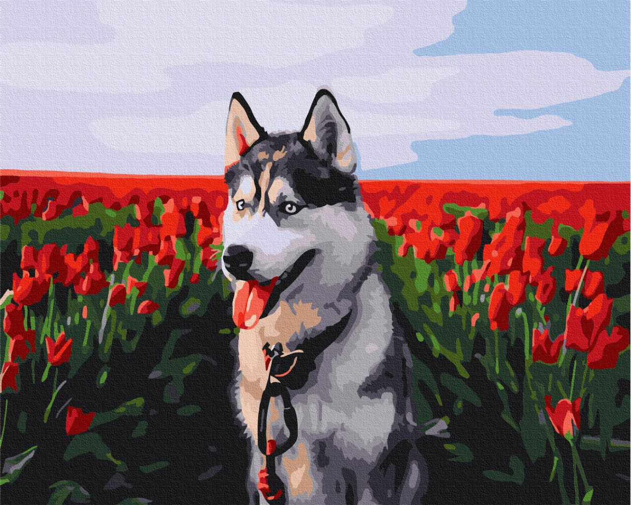 Картина за номерами BrushMe "Хаски в тюльпановому полі" 40х50см BS30983